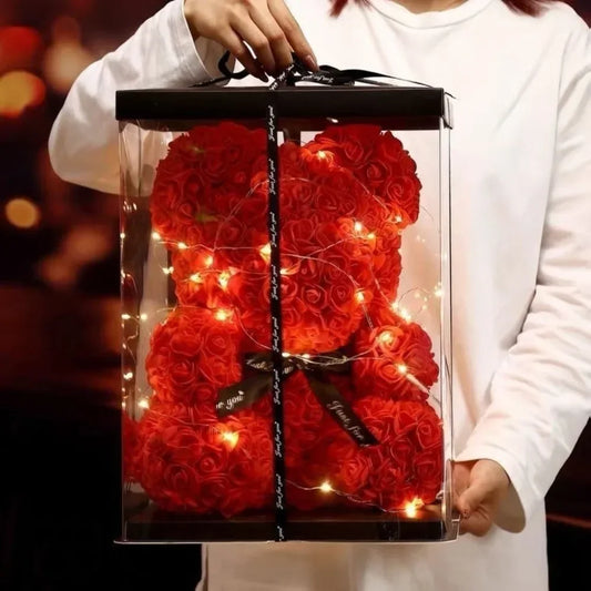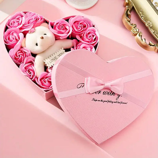 Handgemachte 7 Rose Seife Bouquet Little Bear Geschenk Box für besondere Anlässe wie z.B Valentinstag Muttertag Geburtstag Party Rose Blume Geschenke